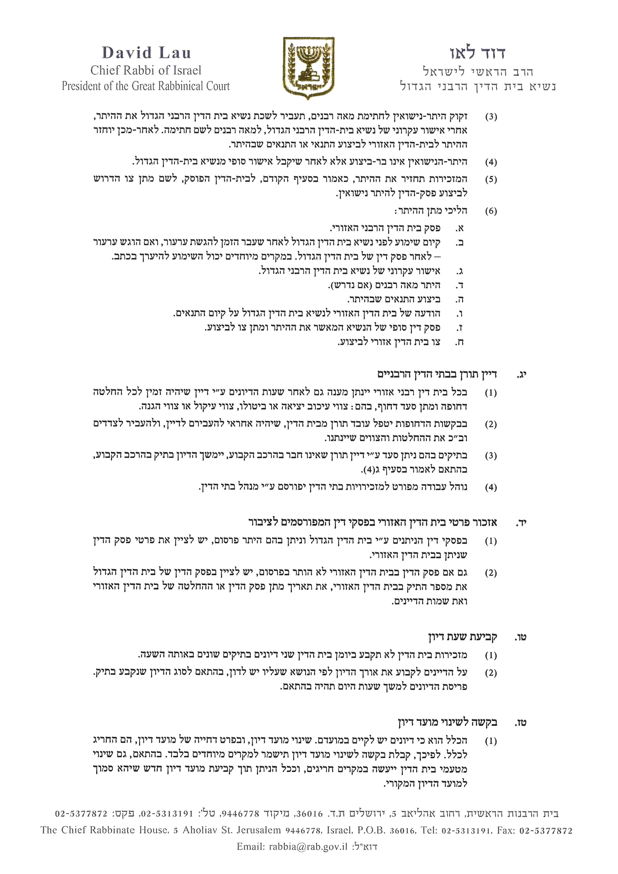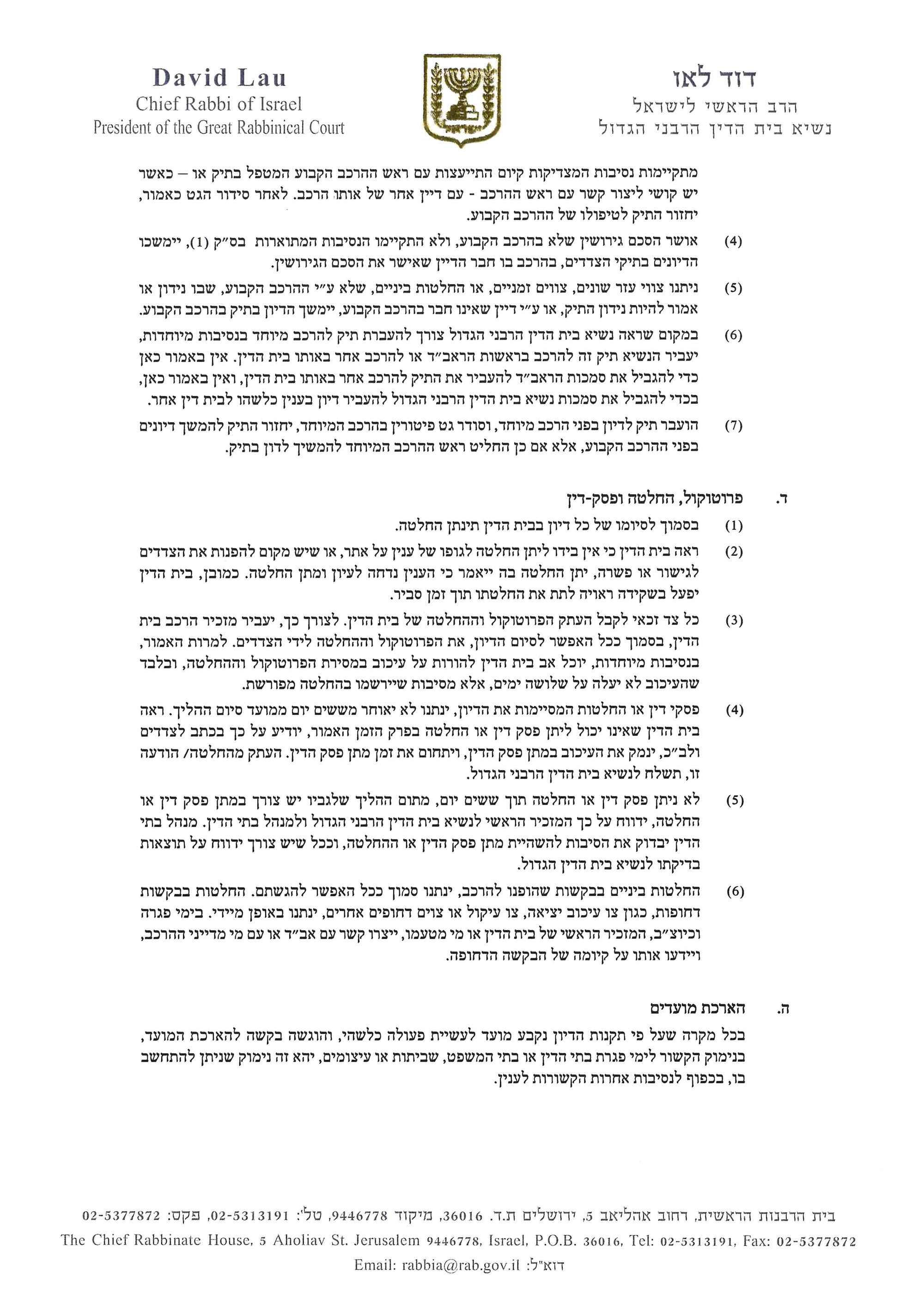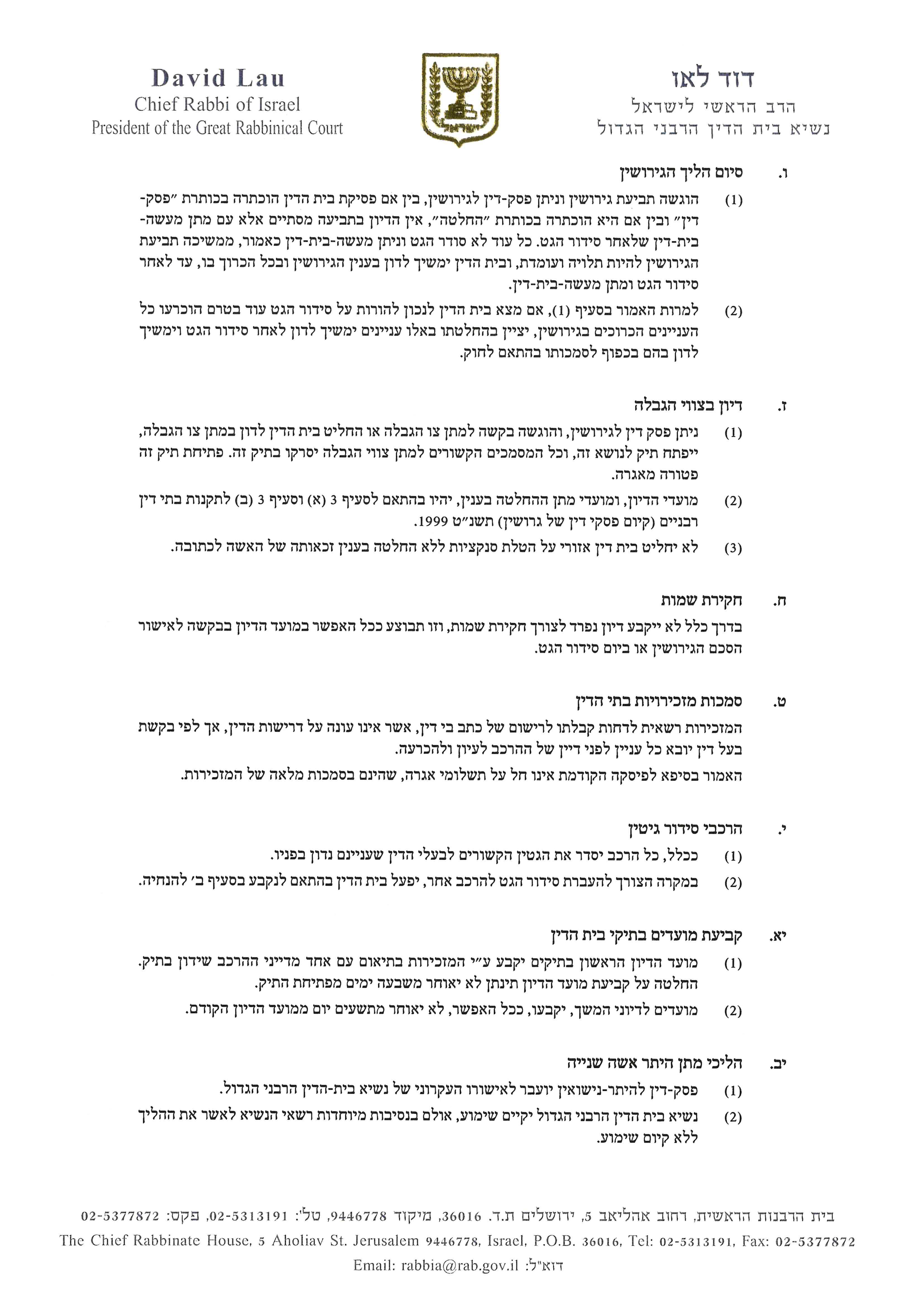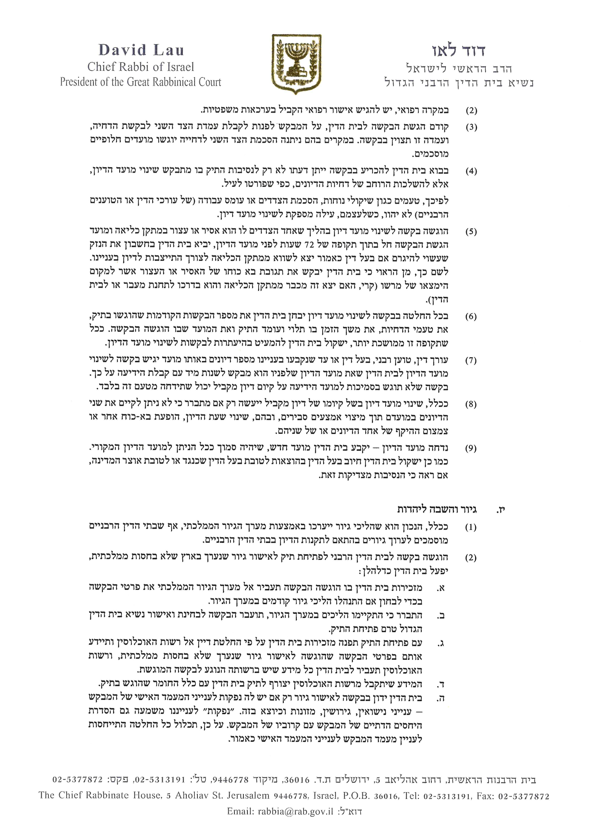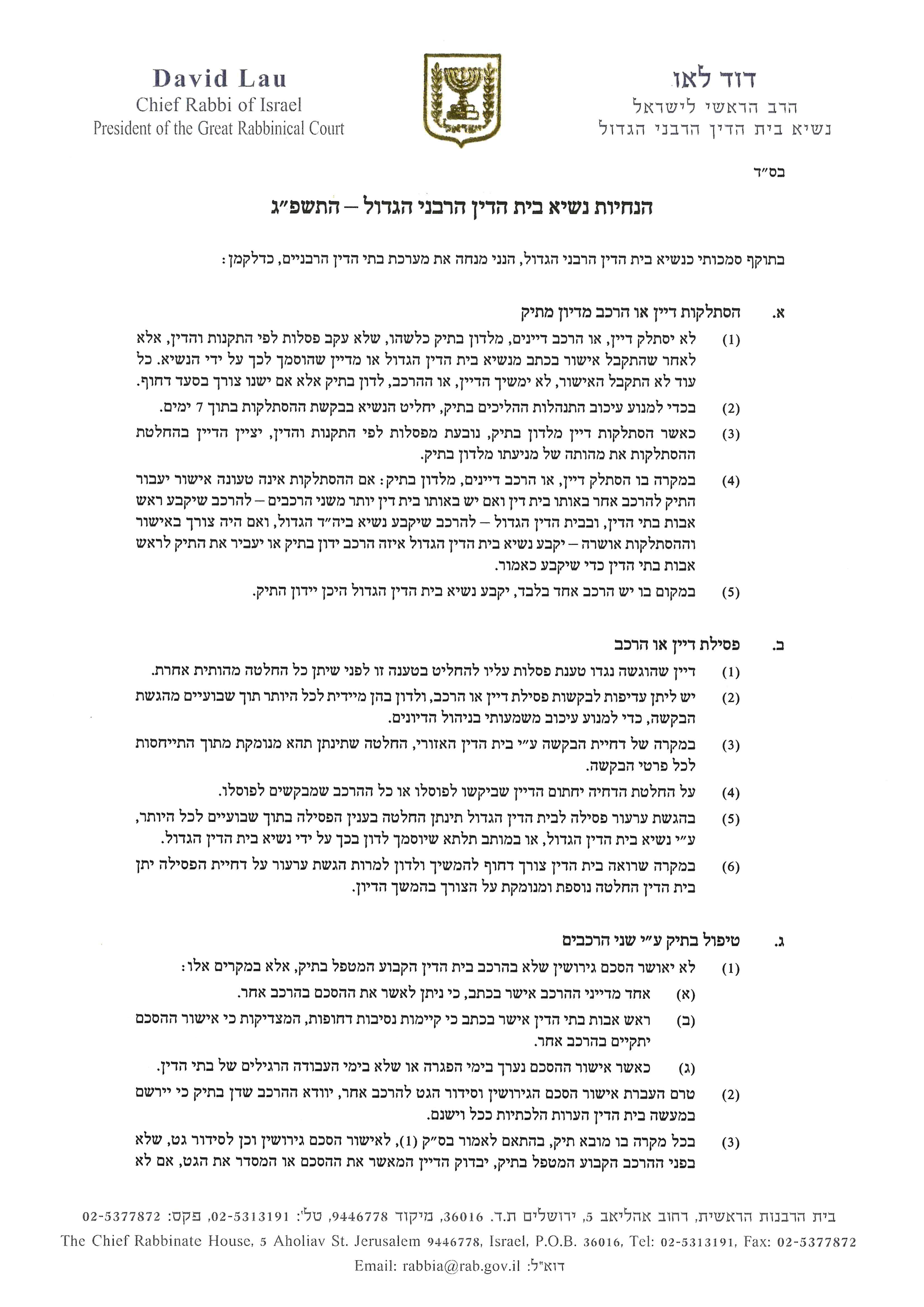 - הנחיות נשיא בית הדין הרבני הגדול החדשות
