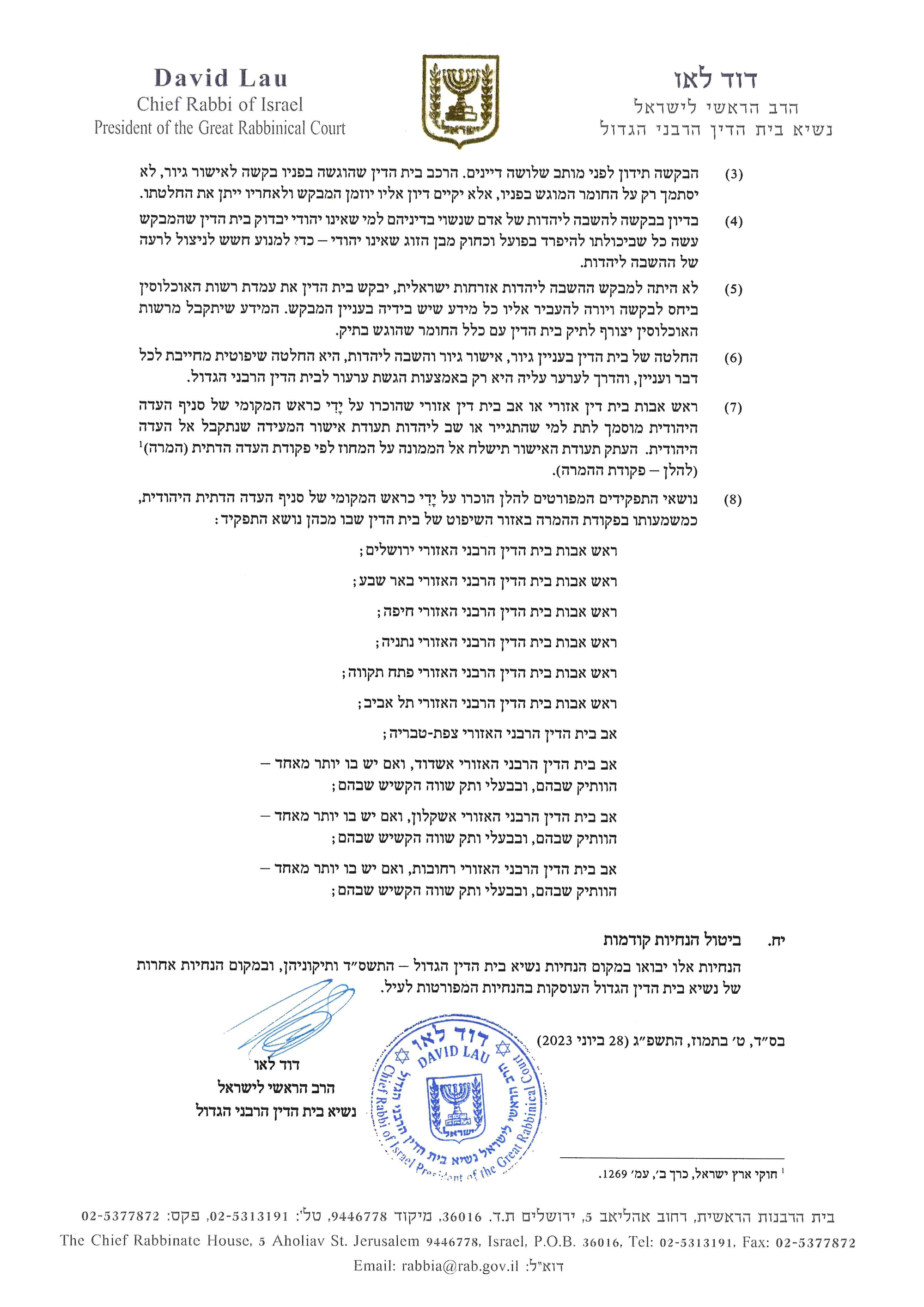 הנחיות נשיא בית הדין הרבני הגדול לשנת תשפ"ג