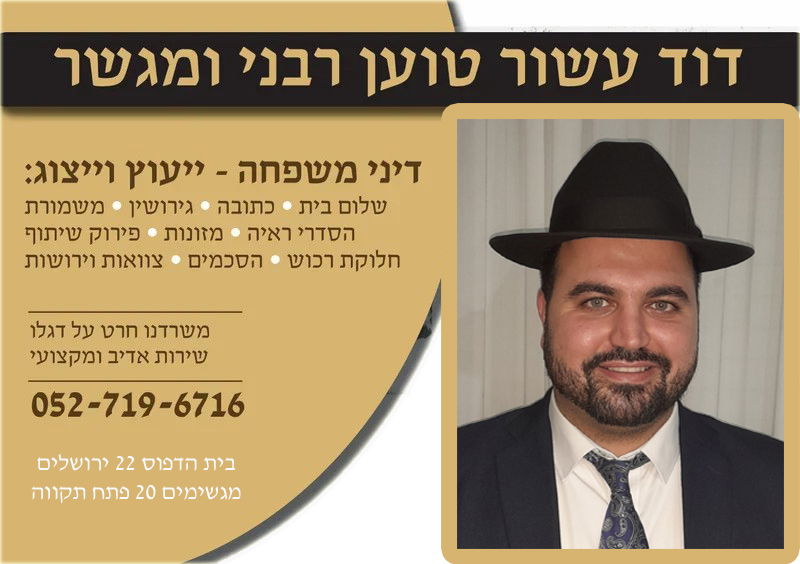 ליצירת קשר עם טוען רבני דוד עשור ניתן לחייג:
