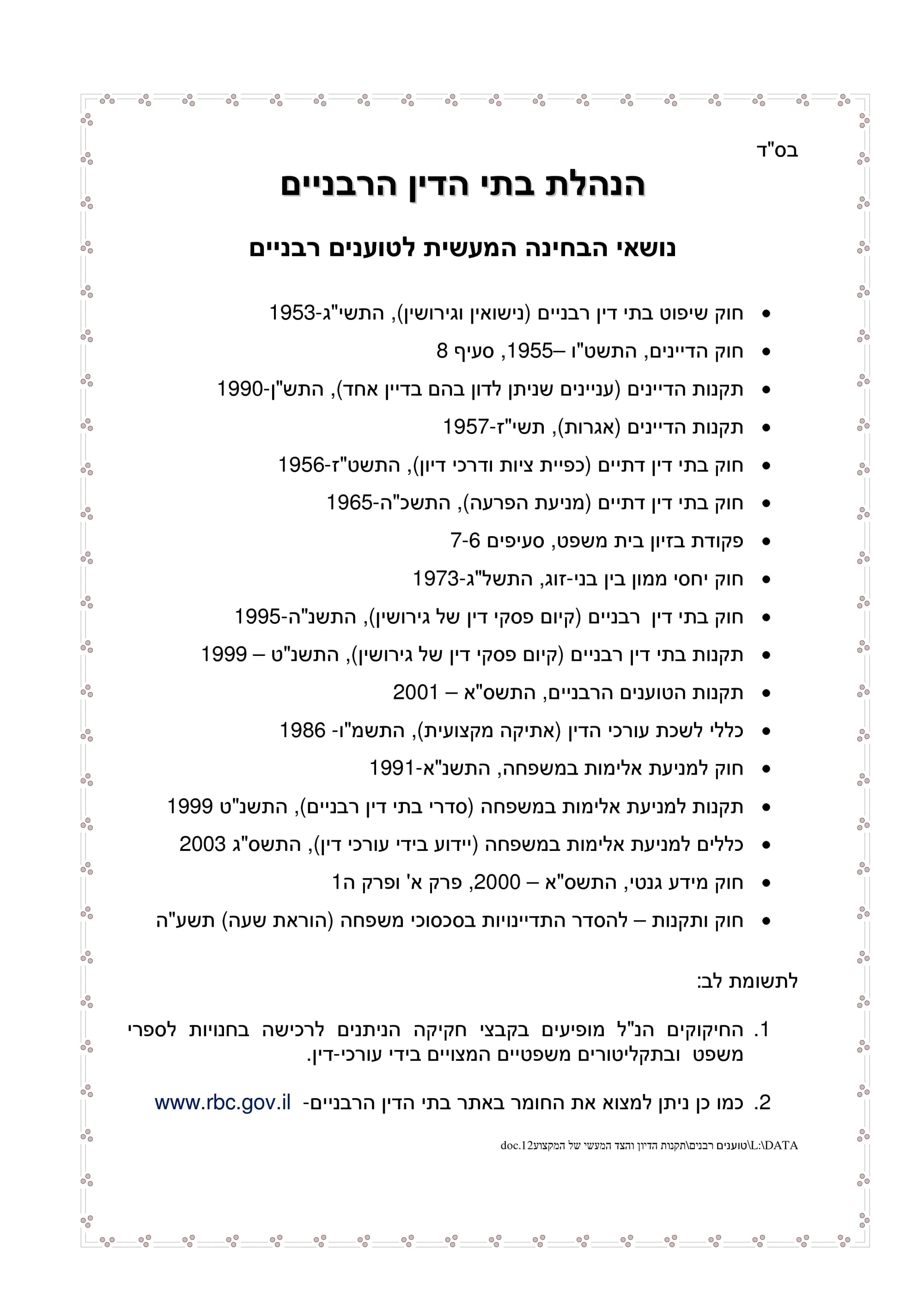 קורס טוען רבני - רשימת החוקים והתקנות לבחינה מעשית